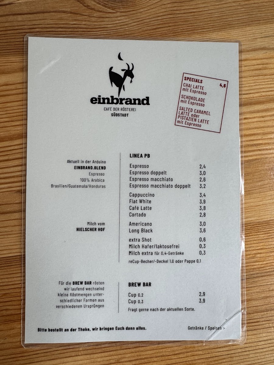 einbrand – Cafe der Rosterei Sudstadt Menu